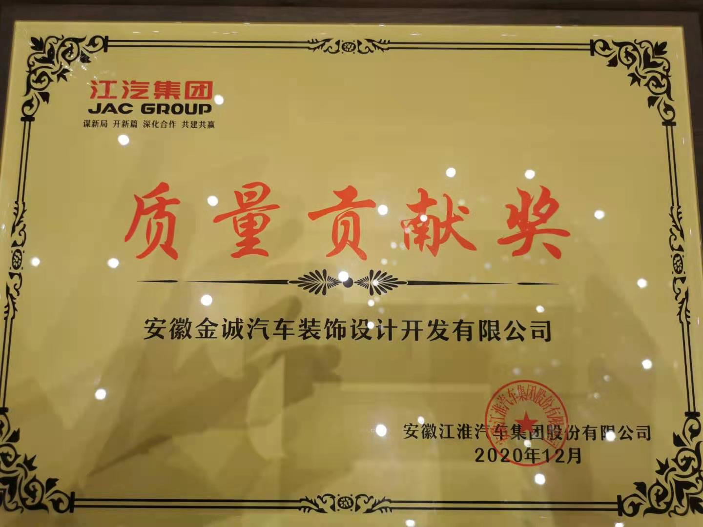 我司獲得江汽集團(tuán)2020年質(zhì)量貢獻(xiàn)獎(jiǎng)