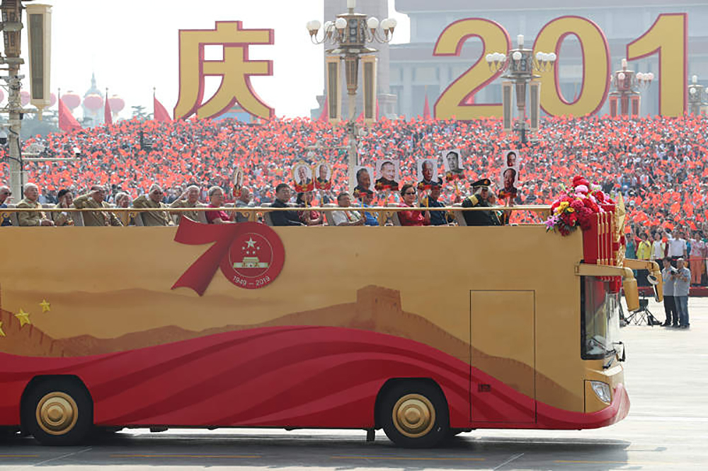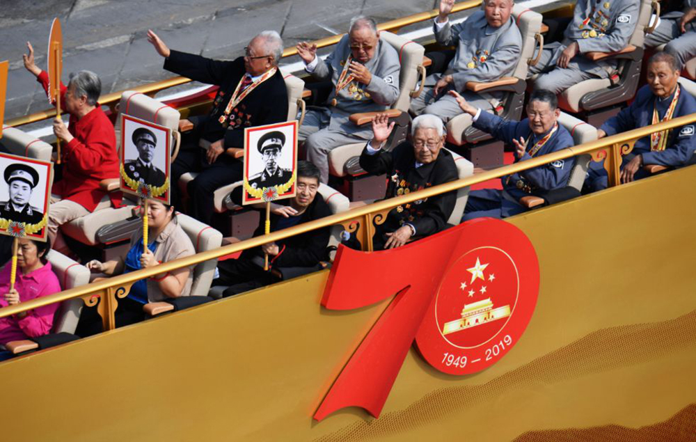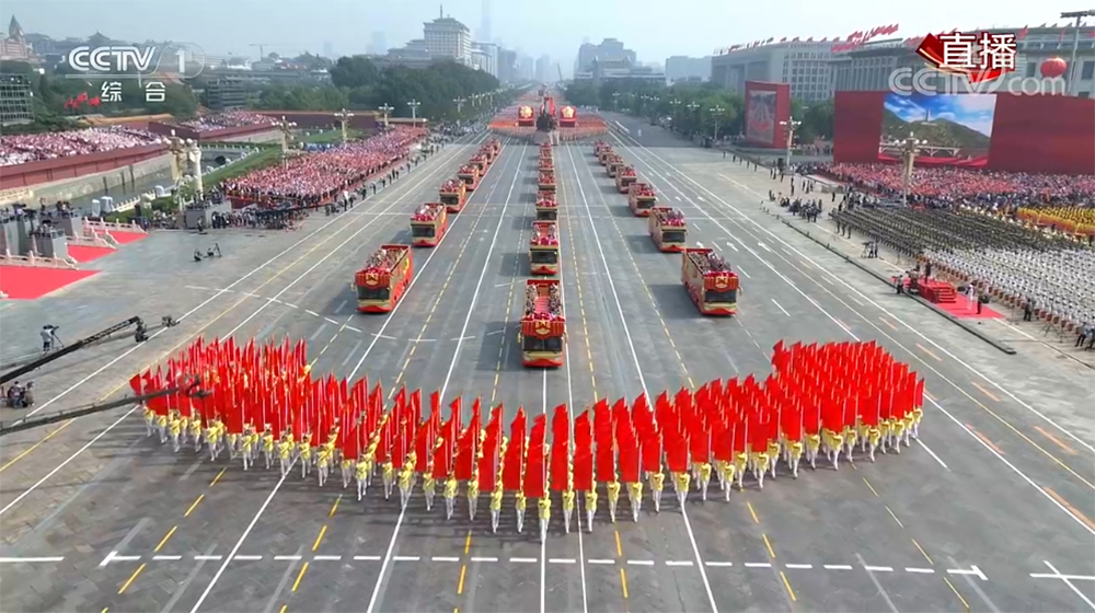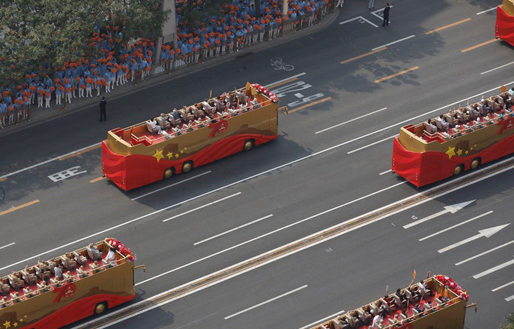 “致敬”禮賓車緩緩駛過長安街,車輛上承載的不僅是老一輩黨和國家、軍隊(duì)領(lǐng)導(dǎo)人親屬代表;老一輩建設(shè)者和家屬代表,新中國成立前參加革命工作的老戰(zhàn)士、老一輩軍隊(duì)退役英模、民兵英模和支前模范代表等堅(jiān)強(qiáng)不息的民族脊梁,更是一個(gè)民族和時(shí)代的記憶,他們平凡且偉大,忠誠、執(zhí)著、樸實(shí),在平凡的工作中創(chuàng)造不平凡的成就。功勛人物們乘坐“致敬”禮賓車,在天安門廣場(chǎng)前接受黨和國家、人民的致敬。
