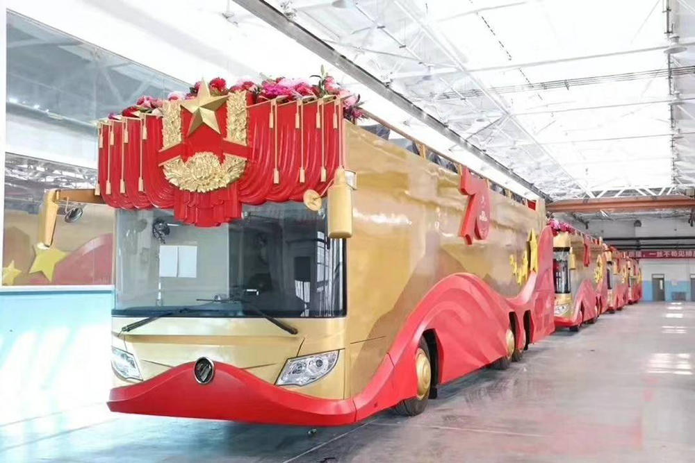 2019年10月1日70年國慶慶典現(xiàn)場(chǎng),致敬方陣由21輛“致敬”禮賓車組成,我司攜手北汽福田提供了整車內(nèi)飾件、儀表臺(tái)和豪華洗手間。