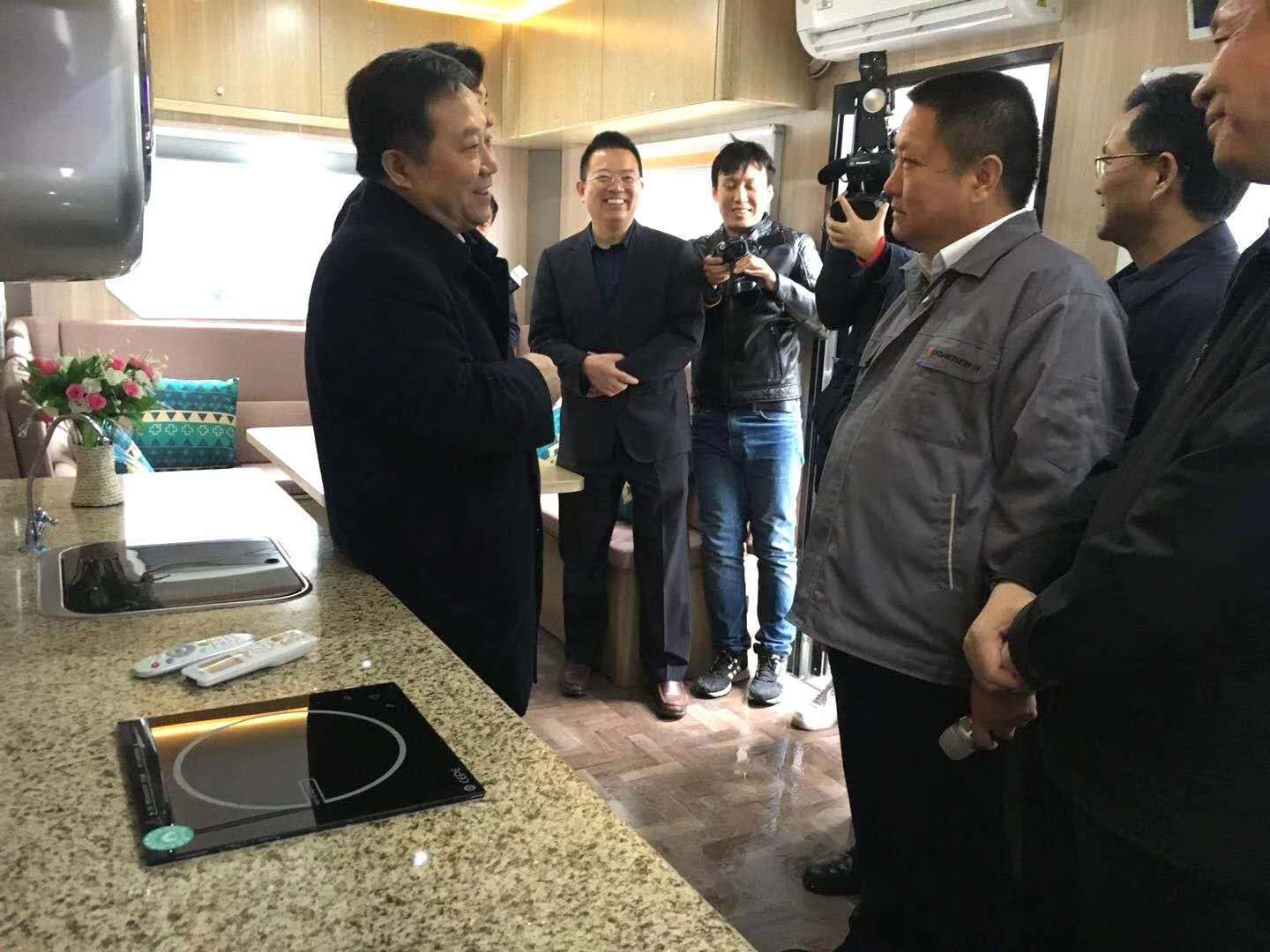 各位領(lǐng)導(dǎo)在孟總的帶領(lǐng)下進(jìn)入房車,參觀了房車的內(nèi)部構(gòu)造,并表達(dá)了對(duì)房車的美好愿景。