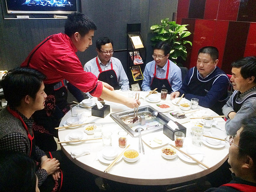 培訓(xùn)結(jié)束后,劉教授與金誠(chéng)管理團(tuán)隊(duì)一同體驗(yàn)了海底撈餐飲文化和公司經(jīng)營(yíng)理念,海底撈合肥區(qū)主管為大家介紹了海底撈企業(yè)文化和經(jīng)營(yíng)管理方式。