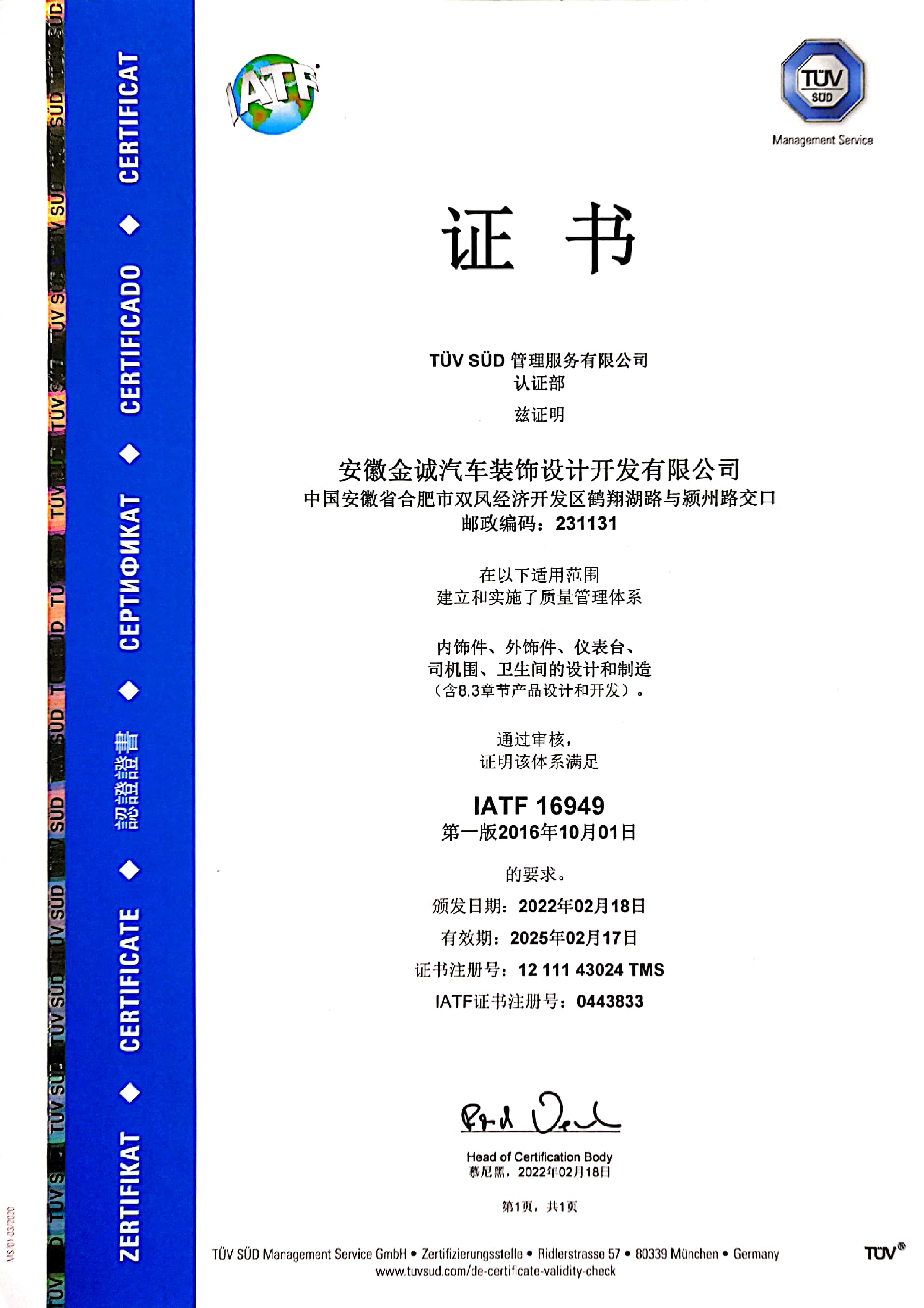IATF16949證書