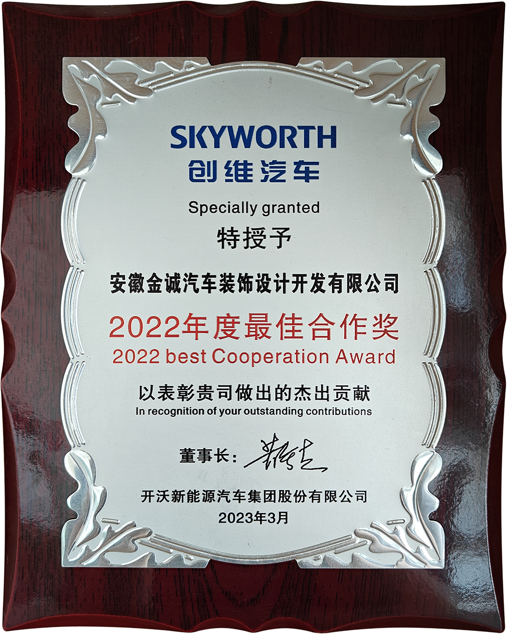 2022創(chuàng)維汽車(chē)年度最佳合作獎(jiǎng)
