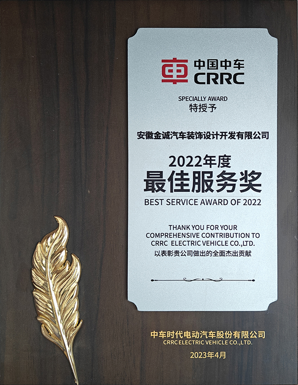 2022中國中車最佳服務(wù)獎