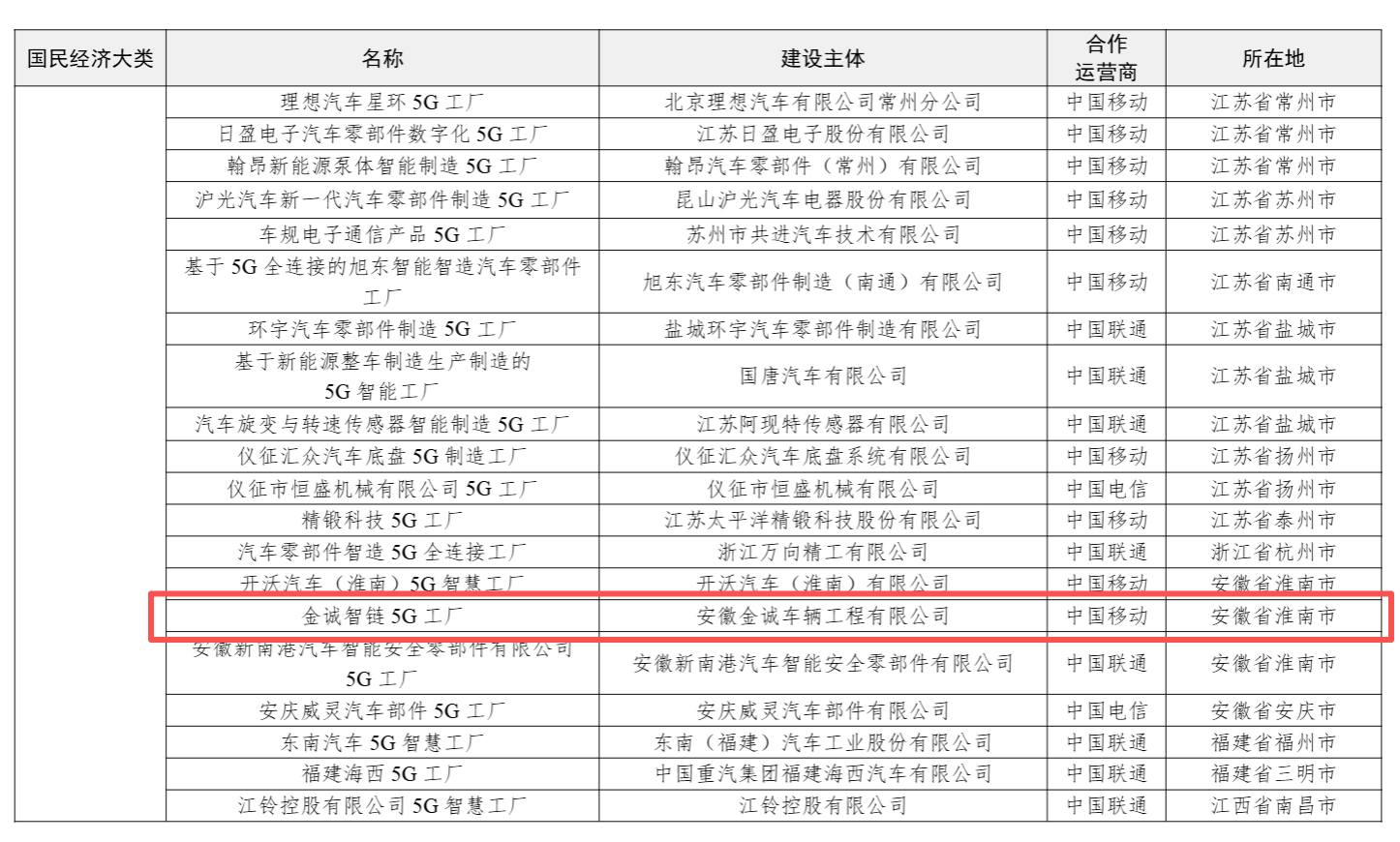 安徽金誠車輛工程有限公司“金誠智鏈5G工廠”成功入選國家級“2025年5G工廠名錄”