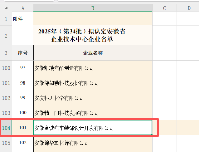 點擊查看>>關(guān)于2025年(第34批)安徽省企業(yè)技術(shù)中心擬認(rèn)定名單的公示